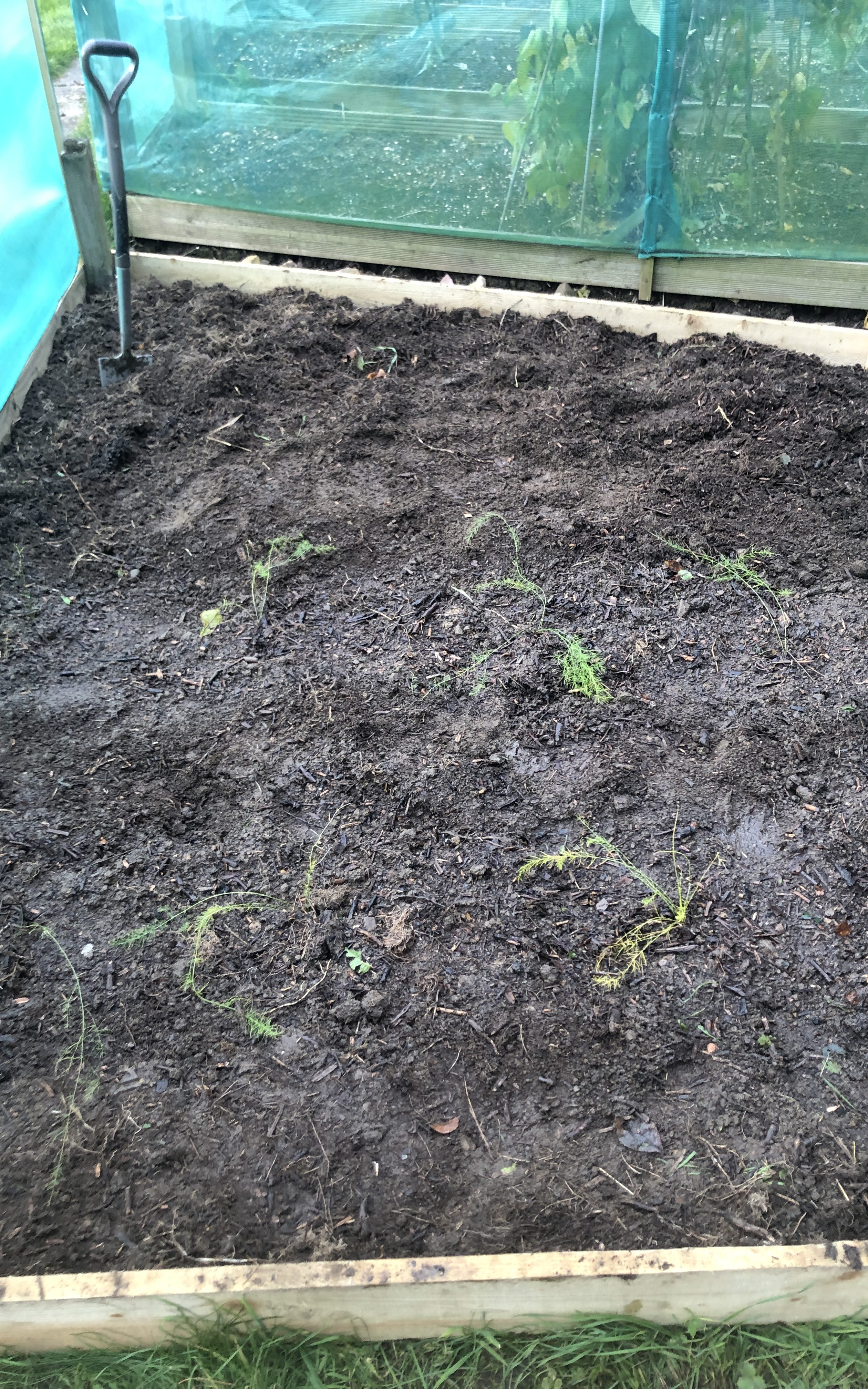 Written like this, the process sounds brisk, efficient even. The reality was extremely slow, with long gaps between stages. Life happened to us with some speed and intensity this summer, and progress on the asparagus bed suffered in consequence. By mid-August, the post holes were still being dug and we were going away on holiday. The tray of seedlings had been moved outside to enjoy the sunshine and be watered alongside the pots. I began to wonder if I would have to get rid of them and start again next year as I couldn’t imagine they would take kindly to over-wintering in the tray.